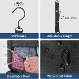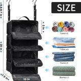 With multiple compartments and pockets, this organizer provides ample storage space for your clothes, shoes, toiletries, and other travel essentials. The hanging packing cubes help you separate and categorize your items, while the portable travel shelves allow you to neatly stack and access your belongings with ease.