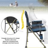Crafted with a durable frame and padded hard armrests, this camping chair provides reliable support and stability. The chair is built to hold up to 400 lbs, ensuring a secure and comfortable seating experience for users of all sizes.